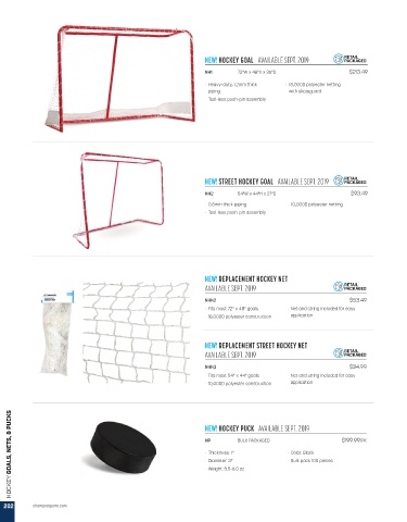 HOCKEY GOALS, NETS, & PUCKS NEW! HOCKEY PUCK AVAILABLE SEPT. 2019 $199.99/PK