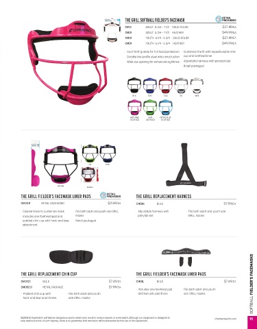 · Padded chin cup with · Fits both adult and youth and two side pad liners size GRILL masks