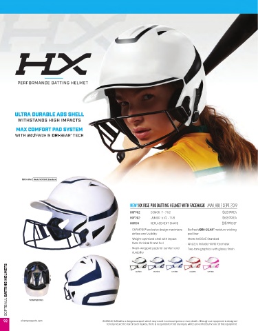 92 champrosports.com WARNING: Softball is a dangerous sport which may result in serious injuries or even death. Although our equipment is designed