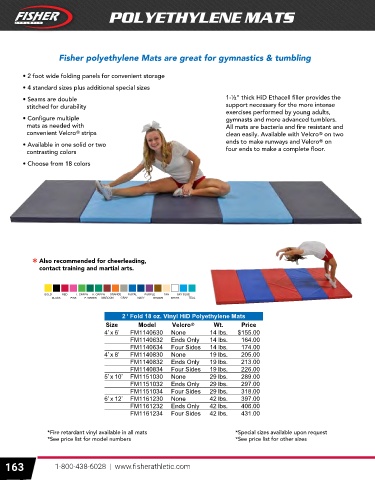 Fisher polyethylene Mats are great for gymnastics & tumbling