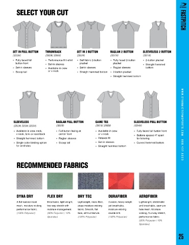 » Fully faced full » Performance fit t-shirt » Self fabric 2-button » Fully faced 2-button » 2-button placket