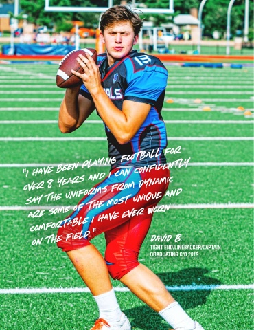 “I have been playing football for over 8 years and I can confidently say the uniforms from Dynamic are some of the most unique and comfortable I have ever worn on the field.” DAVID B. TIGHT END/LINEBACKER/CAPTAIN GRADUATING C/O 2019
