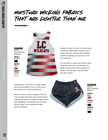 T EAM UNIFORMS 2019 RED racerback construction, are finished with a