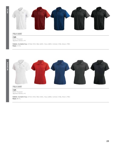 Colors: Available Now; White (100), Red (250), Navy (490), Carbon (758), Black (790)