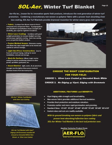 lace coating, SOL-Aer Turf Blankets provide improved insulation for winter-weary grass root systems.