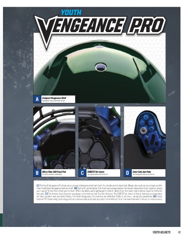 [A] The Youth Vengeance Pro features a compact Vengeance helmet shell: it’s smaller and streamlined. Weighs less and carries a lower profile