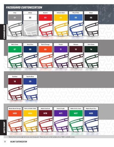 * Matte finish can be applied to any color faceguard. These are just a small sample of our 1000+ available colors.