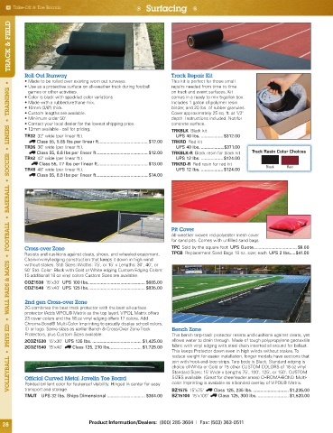 Resists and cushions against cleats, shoes, and wheeled equipment. TPCB Replacement Sand Bags 18 oz. size; each UPS 2 lbs. ....$41.00