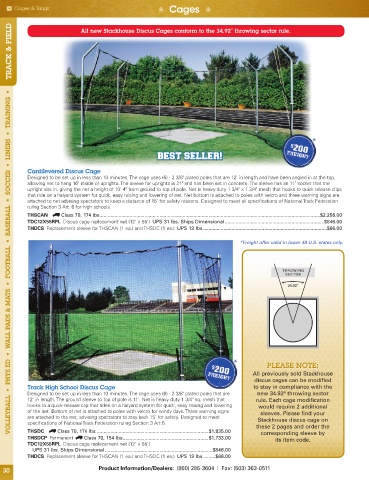 are attached to the net, advising spectators to stay back 15' for safety. Designed to meet Stackhouse discus cage on