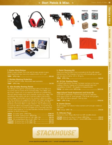 I. Starter Pistol Holster L. Pistol Cleaning Kit TRACK & FIELD • TRAINING • LINERS • SOCCER • BASEBALL • FOOTBALL • WALL PADS & MATS • PHYS ED • VOLLEYBALL
