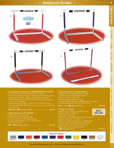 A. Cantabrian Aluminum “INTERNATIONAL” Hurdle C. Elite Aluminum College Hurdle
