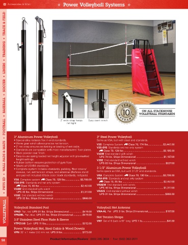 • Complete system includes standards, padding, floor covers/ 3 1/2" Aluminum Power Volleyball