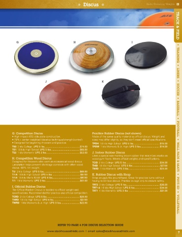 G. Competition Discus Practice Rubber Discus (not shown) TRACK & FIELD • TRAINING • LINERS • SOCCER • BASEBALL • FOOTBALL • WALL PADS & MATS • PHYS ED • VOLLEYBALL