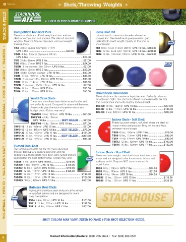 TIWS112 12 lbs; 108mm UPS 13 lbs. .......................................$97.00 indoor meets and practice. They will not mar floor,