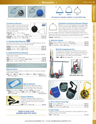 TCSH103 12 lbs.; 102mm; Blue UPS 13 lbs. ......................... $173.00 Was used on hammer that set new record for hammer throw.