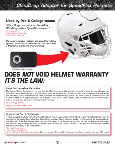engineering standpoint, I can attest that SportStar’s chinstrap Adapter does not weaken or compromise the structural integ-