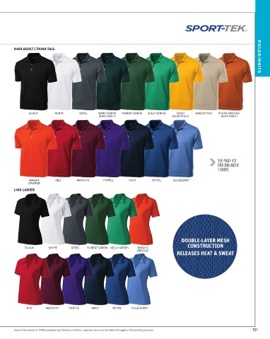 Due to the nature of 100% polyester performance fabrics, special care must be taken throughout the printing process. 121
