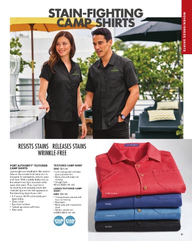 by resisting and releasing stains and LADIES TEXTURED CAMP