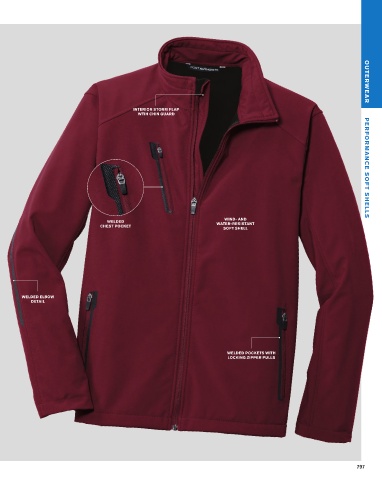 INTERIOR STORM FLAP OUTERWEAR WTIH CHIN GUARD WIND- AND PERFORMANCE SOFT SHELLS WELDED WATER-RESISTANT CHEST POCKET SOFT SHELL WELDED ELBOW DETAIL WELDED POCKETS WITH LOCKING ZIPPER PULLS 797