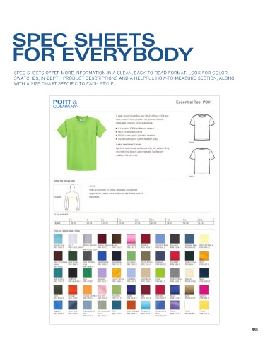 SPEC SHEETS FOR EVERYBODY SPEC SHEETS OFFER MORE INFORMATION IN A CLEAN, EASY-TO-READ FORMAT. LOOK FOR COLOR SWATCHES, IN-DEPTH PRODUCT DESCRIPTIONS AND A HELPFUL HOW-TO-MEASURE SECTION, ALONG WITH A SIZE CHART SPECIFIC TO EACH STYLE. 865