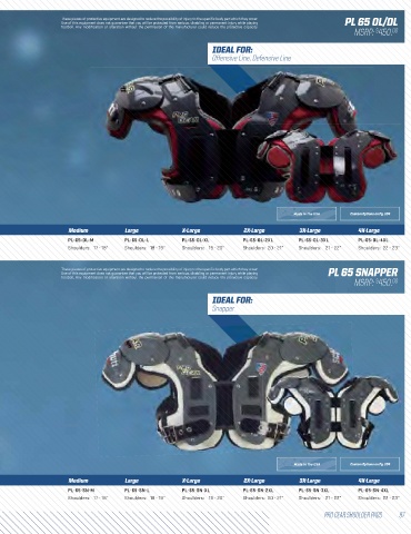 Use of this equipment does not guarantee that you will be protected from serious, disabling or permanent injury while playing PL 65 OL/DL