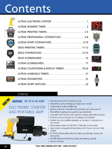 NEw SP-70 & SP-AMP ♦ ♦ Improved over Ultrak SP-50 electric starter ♦ ♦ Four digit LED segment timer viewable up to 300 feet away ♦ ♦ Three additional operating modes