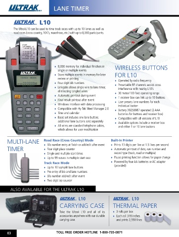 The UltrakL10 can be used to time track races with up to 10 lanes as well as