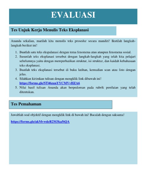 Tes Unjuk Kerja Menulis Teks Eksplanasi