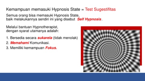 Kemampuan memasuki Hypnosis State = Test Sugestifitas