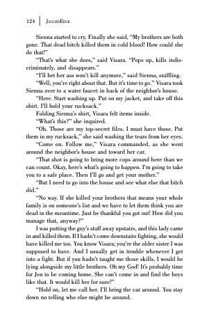 Sienna started to cry. Finally she said, “My brothers are both gone. That dead bitch killed them in cold blood! How could she do that!”