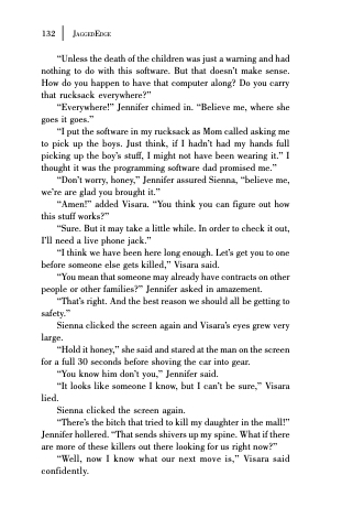 “There’s the bitch that tried to kill my daughter in the mall!” Jennifer hollered. “That sends shivers up my spine. What if there are more of these killers out there looking for us right now?”