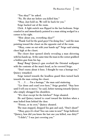 He and Quincy turned to crawl toward the kitchen when a man bolted from behind the door.