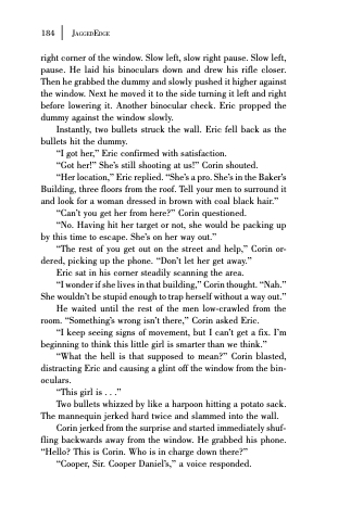 beginning to think this little girl is smarter than we think.” “What the hell is that supposed to mean?” Corin blasted, distracting Eric and causing a glint off the window from the bin-