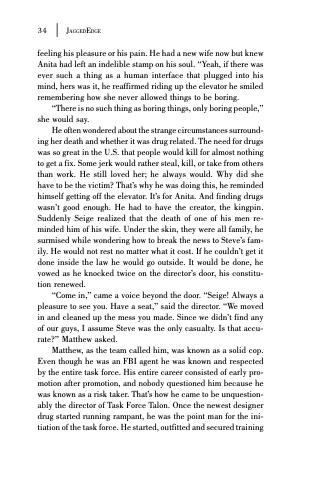 “Come in,” came a voice beyond the door. “Seige! Always a pleasure to see you. Have a seat,” said the director. “We moved in and cleaned up the mess you made. Since we didn’t find any of our guys, I assume Steve was the only casualty. Is that accu- rate?” Matthew asked.