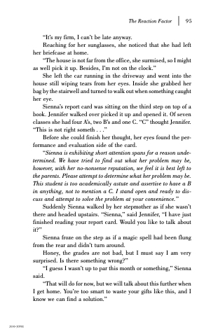 Suddenly Sienna walked by her stepmother as if she wasn’t there and headed upstairs. “Sienna,” said Jennifer, “I have just finished reading your report card. Would you like to talk about it?”