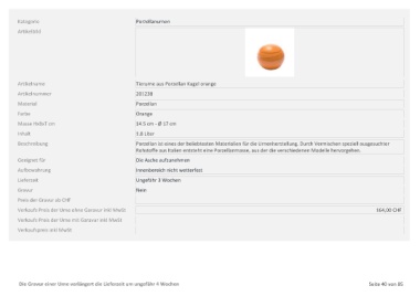 Die Gravur einer Urne verlängert die Lieferzeit um ungefähr 4 Wochen Seite 40 von 85