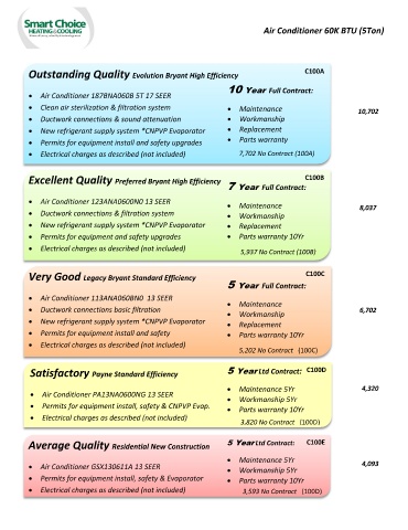 • Air Conditioner 187BNA060B 5T 17 SEER 10 Year Full Contract: