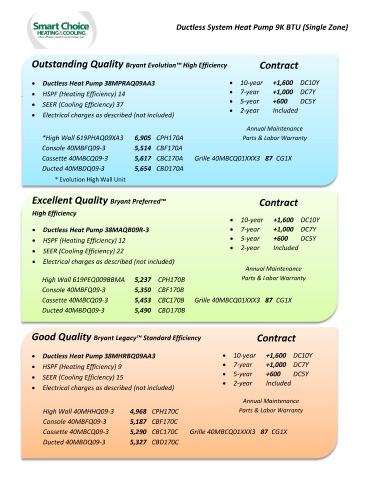 • HSPF (Heating Efficiency) 9 • 7-year +1,000 DC7Y