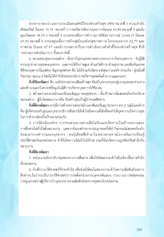 ภาพรวม ร้อยละ 67.97 และมีการถอดบทเรียนการด าเนินการตัวตัวชี้วัดองค์กรสร้างสุข ซึ่งมี