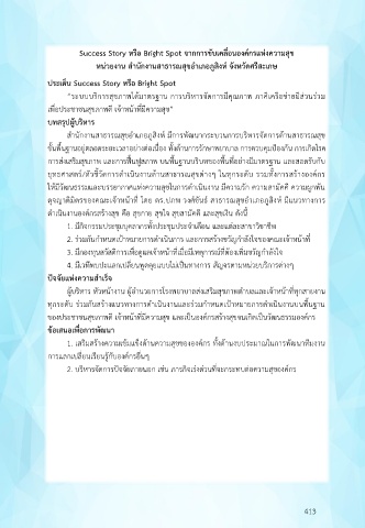 Success Story หรือ Bright Spot จากการขับเคลื่อนองค์กรแห่งความสุข