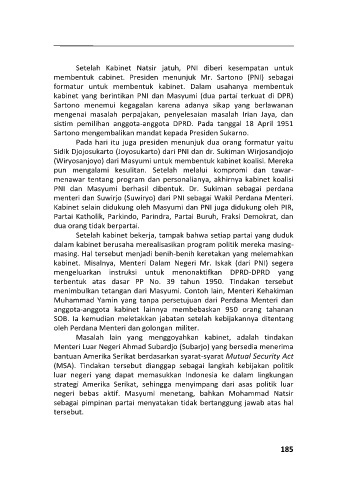 kabinet. Misalnya, Menteri Dalam Negeri Mr. Iskak (dari PNI) segera