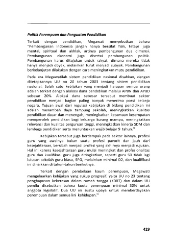 Terkait dengan pendidikan, Megawati menyebutkan bahwa