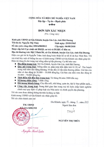 xin trinh bdy mQt sd tin sau vd kfnh mong UBND xd Gia Khrinh x6c nhfln girip t6i: