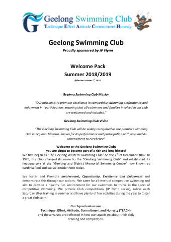 “The Geelong Swimming Club will be widely recognised as the premier swimming club in regional Victoria, known for its performance and participation pathways and its
