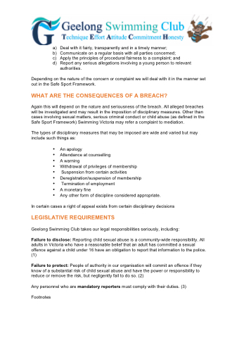 Geelong Swimming Club takes our legal responsibilities seriously, including: