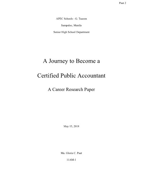 Paat 2 APEC Schools - G. Tuazon Sampaloc, Manila Senior High School Department A Journey to Become a Certified Public Accountant A Career Research Paper May 15, 2018 Ma. Gloria C. Paat 11AM-1