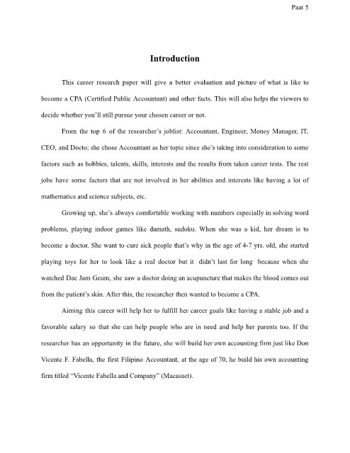 CEO, and Docto; she chose Accountant as her topic since she’s taking into consideration to some