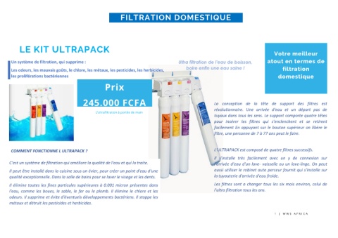 l'eau, comme les boues, le sable, le fer ou le plomb. Il élimine le chlore et les l'ultra filtration tous les ans.