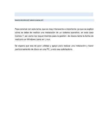 Centos 7; así como los requerimientos para la gestión de discos tanto la forma de