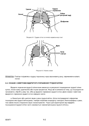 зображено грудна клітка і легені в нормальному стані. На рисунку 6-2 зображено грудна клітка і відкритого поранення грудної клітки наведені нижче.